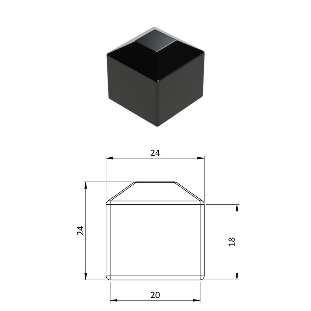 - Vnější krytka 20 x 20 mm, plastová PE, černá