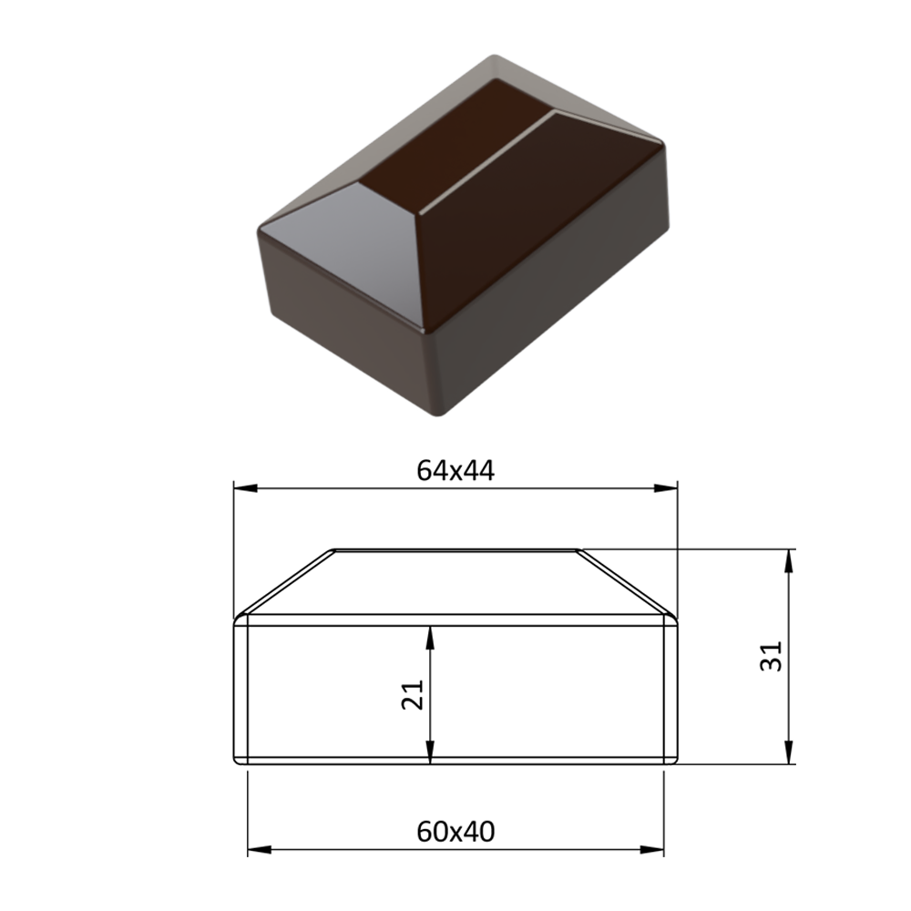 - Vnější krytka 40 x 60 mm, plastová PE, hnědá