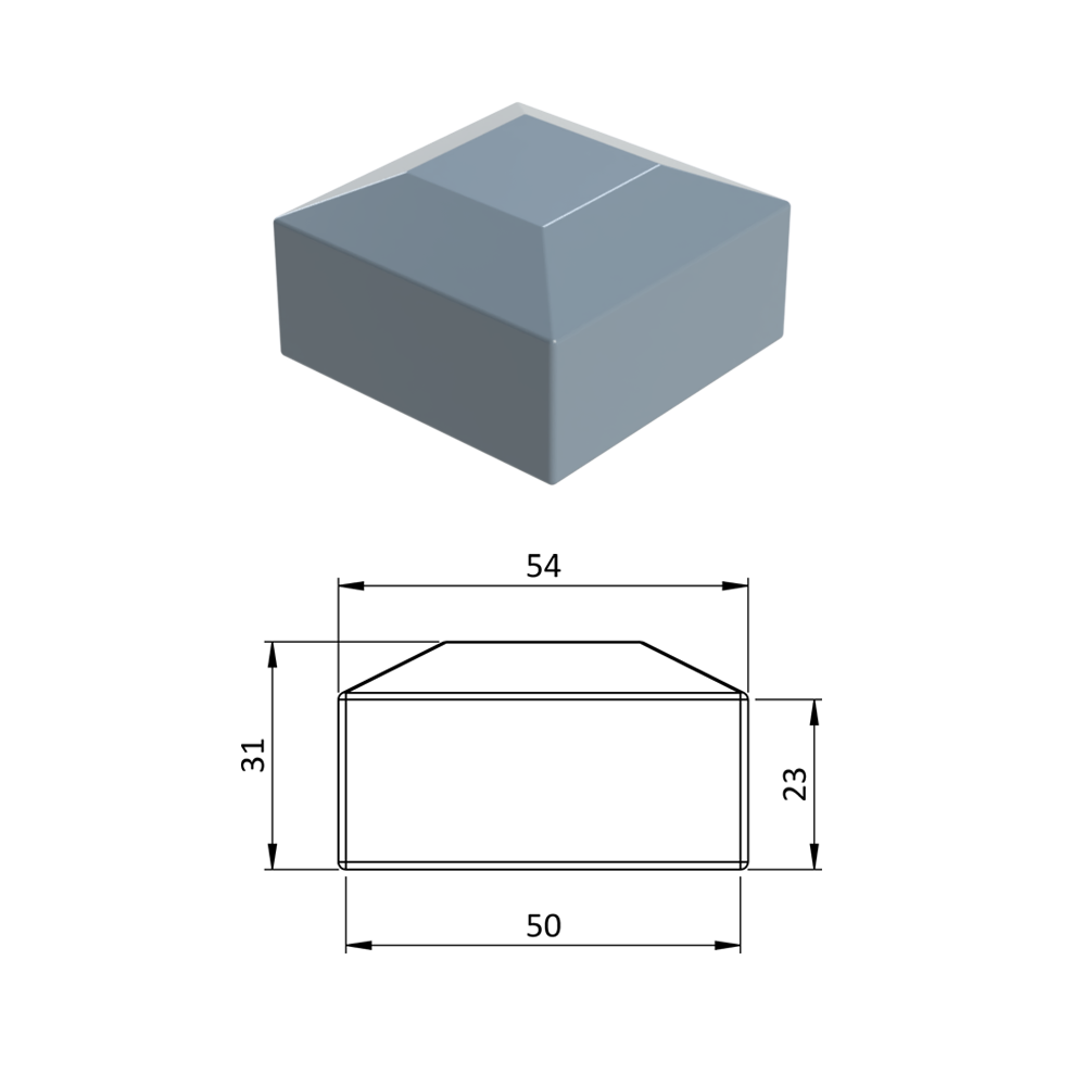 - Vnější krytka 50 x 50 mm, plastová PE, šedá