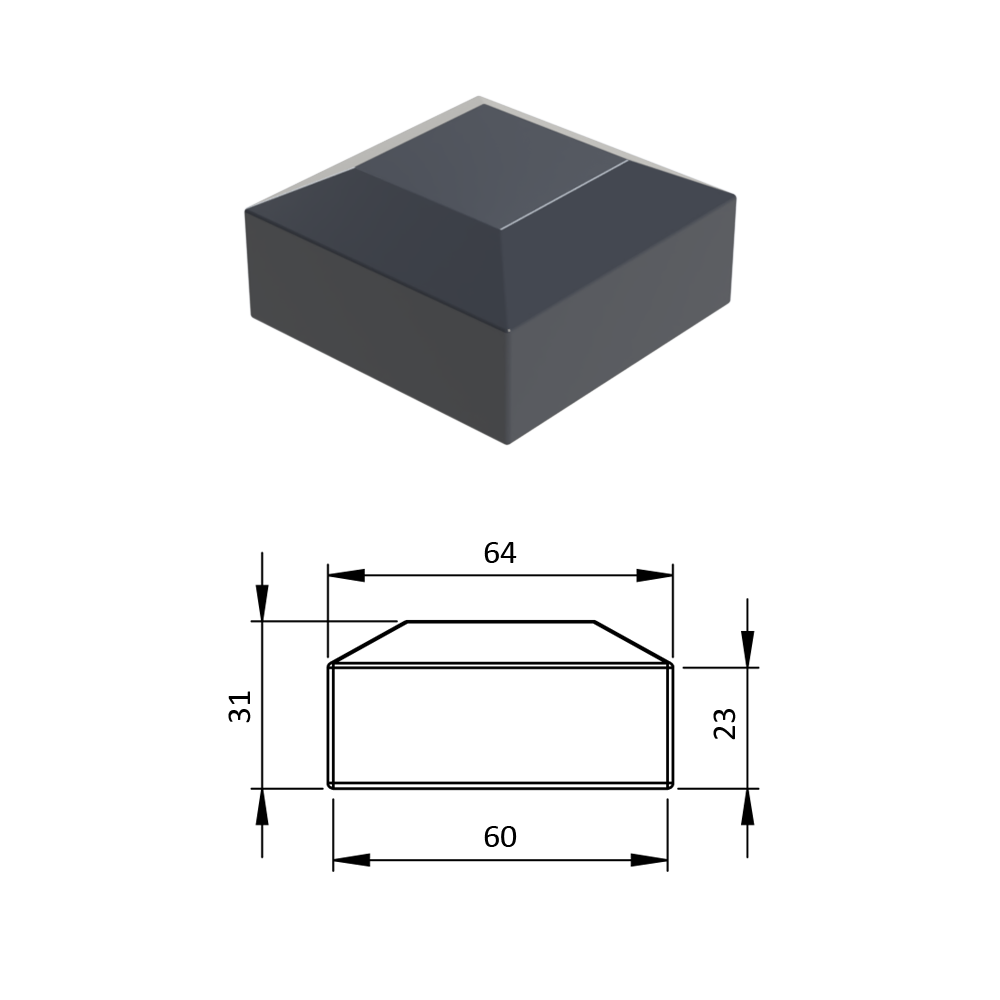 - Vnější krytka 60 x 60 mm, plastová PE, antracit