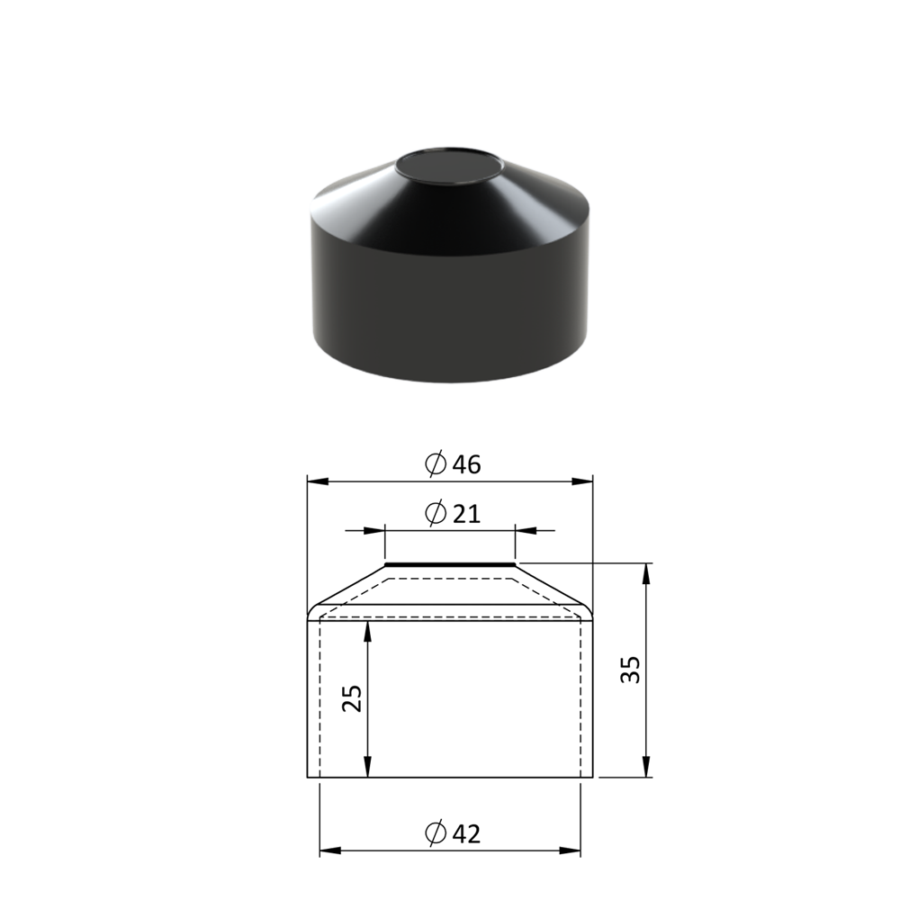 - Vnější krytka kulatá ø 42,4 mm, plastová PE, černá