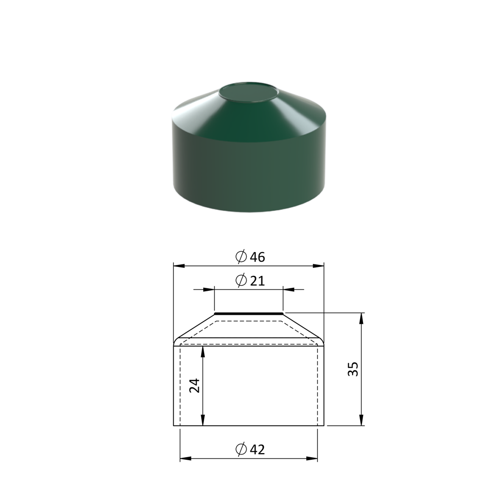 - Vnější krytka kulatá ø 42 mm, plastová PE, zelená