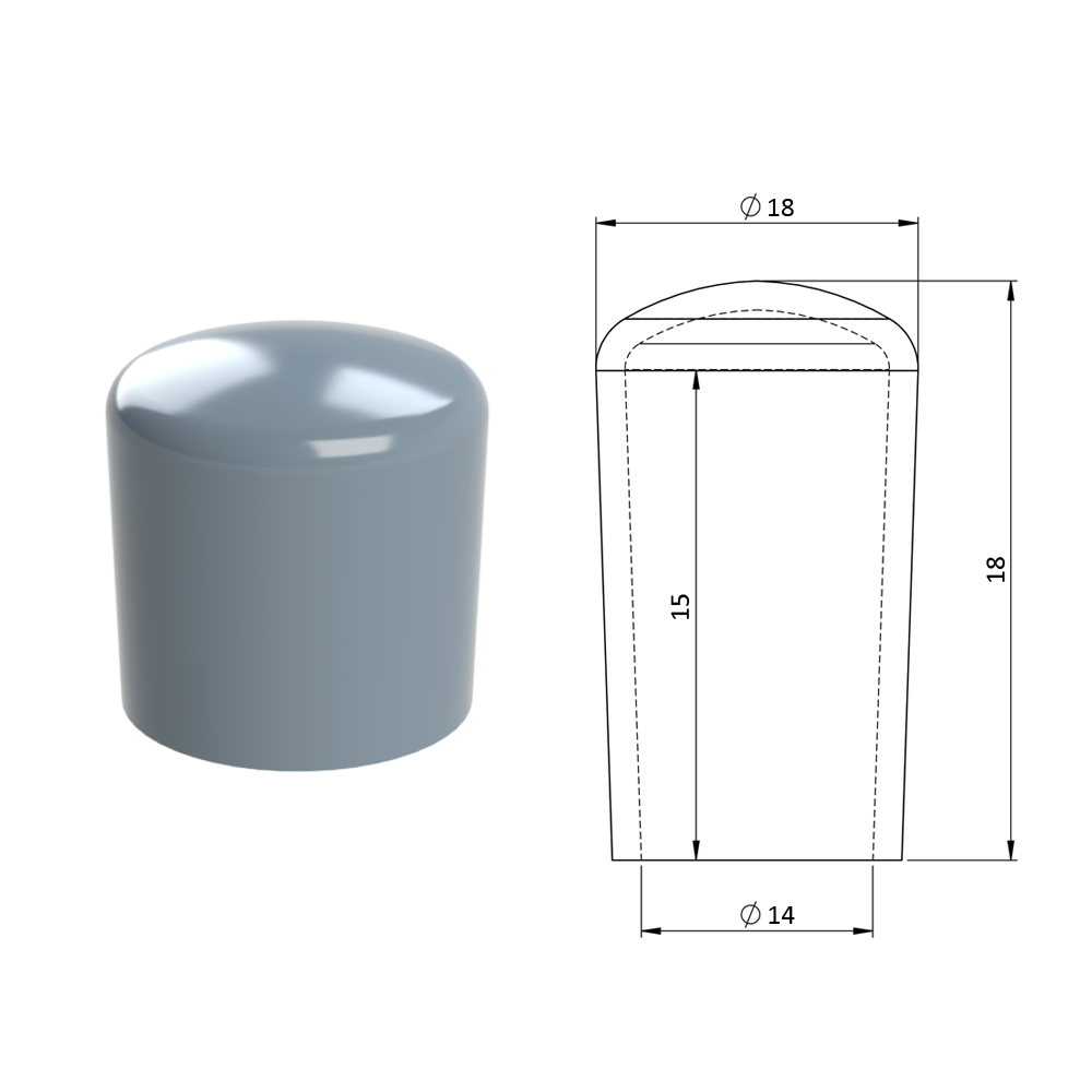 - Vnější krytka PVC ø 18 x 18 mm, otvor 14 x 15 mm, šedá