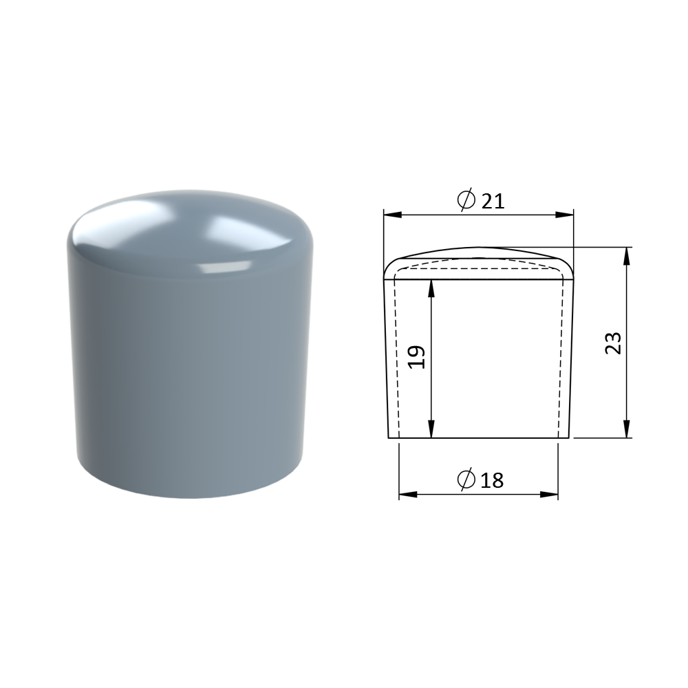 - Vnější krytka PVC ø 21 x 23 mm, otvor 18 x 19 mm, šedá