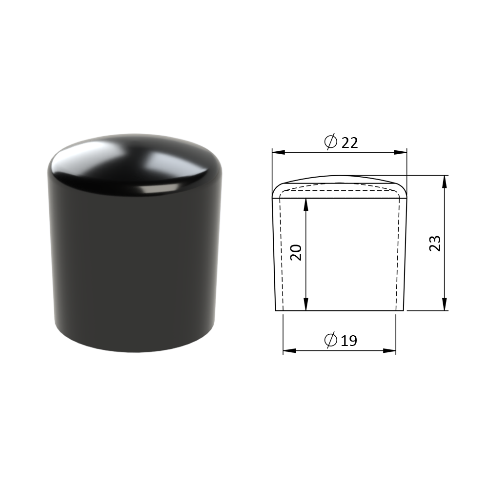 - Vnější krytka PVC ø 22 x 23 mm, otvor 19 x 20 mm, černá