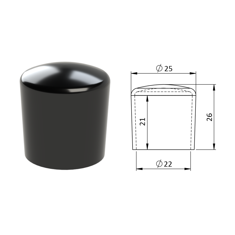 - Vnější krytka PVC ø 25 x 26 mm, otvor 22 x 21 mm, černá