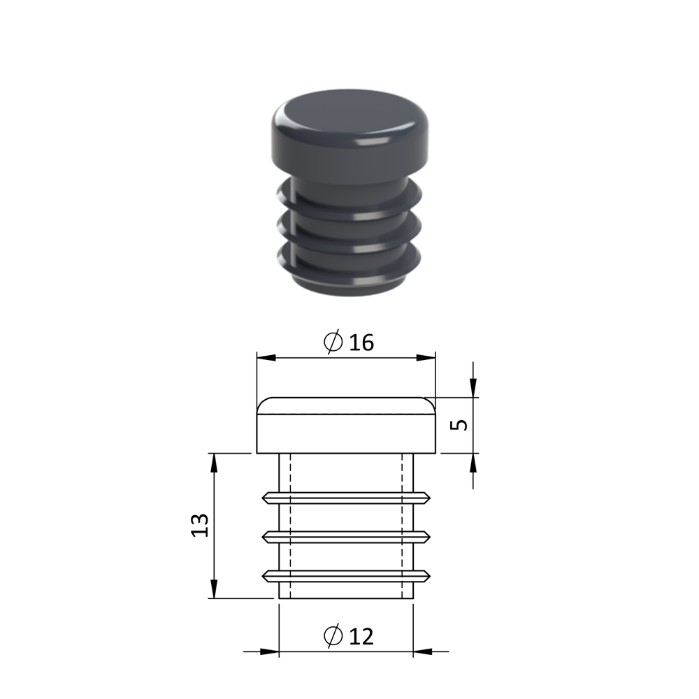 Vnitřní krytka kulatá ø 16 mm, plastová, antracitSkladem1,90 Kč/ KS1,57 Kč bez DPH