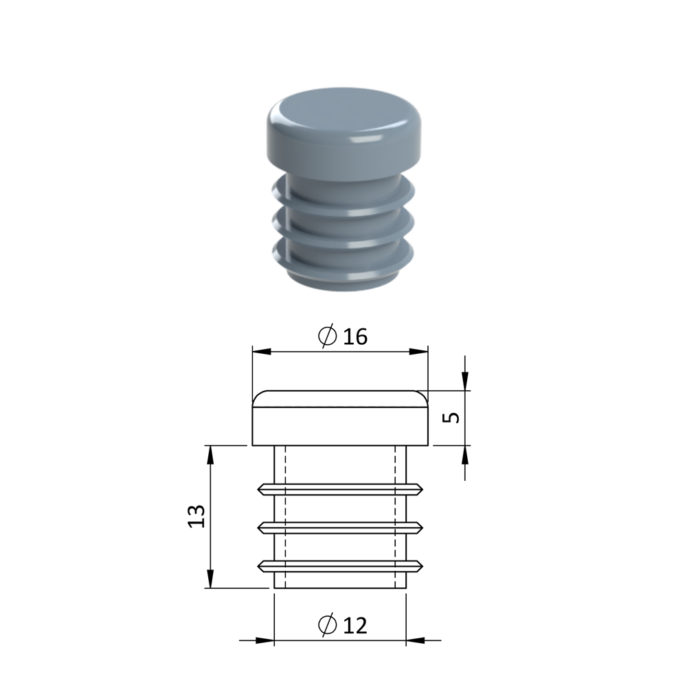 - Vnitřní krytka kulatá ø 16 mm, plastová, šedá