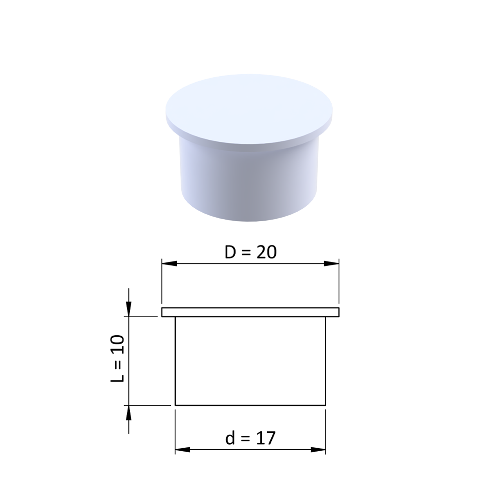 - Vnitřní krytka kulatá ø 20 mm, otvor ø 17 mm, bílá, plast