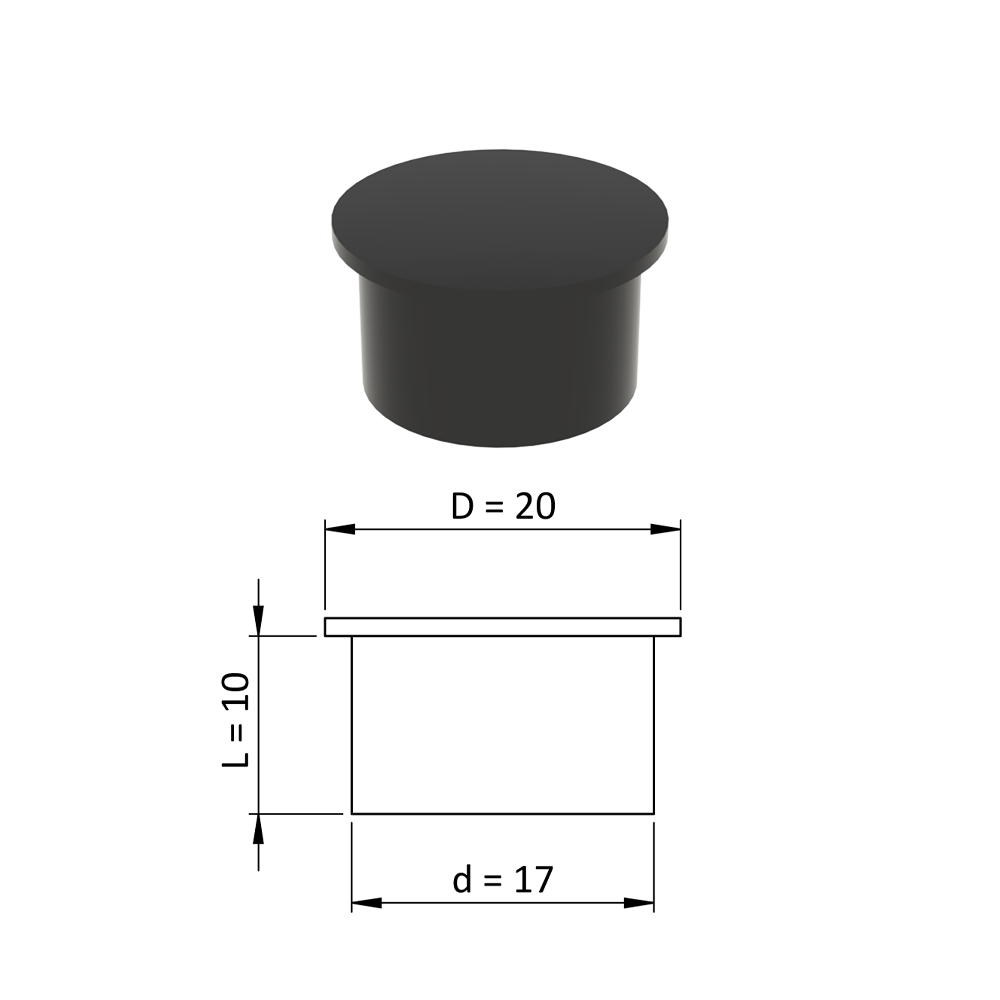 - Vnitřní krytka kulatá ø 20 mm, otvor ø 17 mm, černá, plast