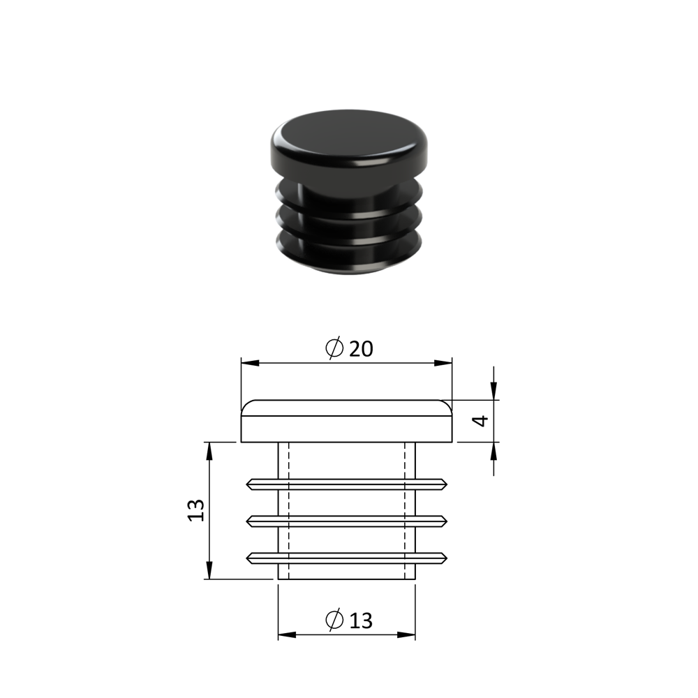 - Vnitřní krytka kulatá ø 20 mm, plastová, černá