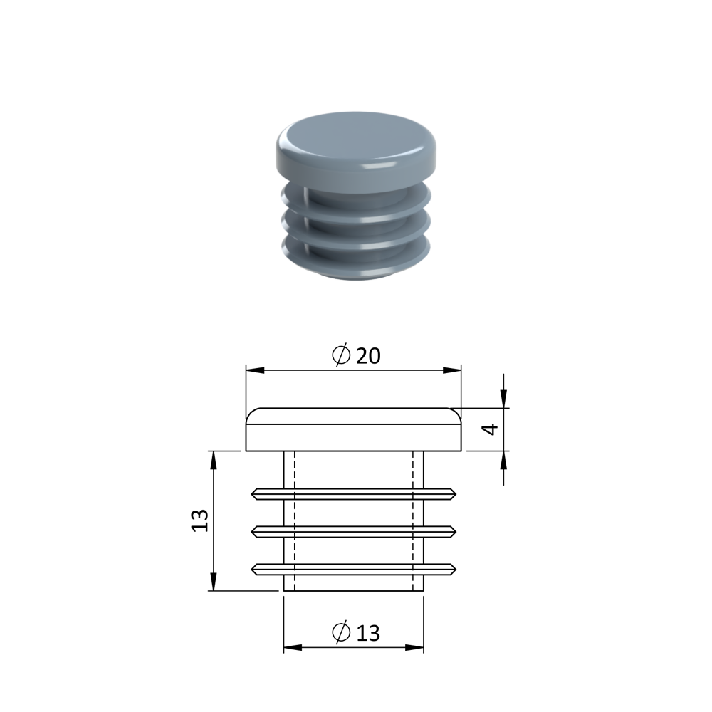 - Vnitřní krytka kulatá ø 20 mm, plastová, šedá