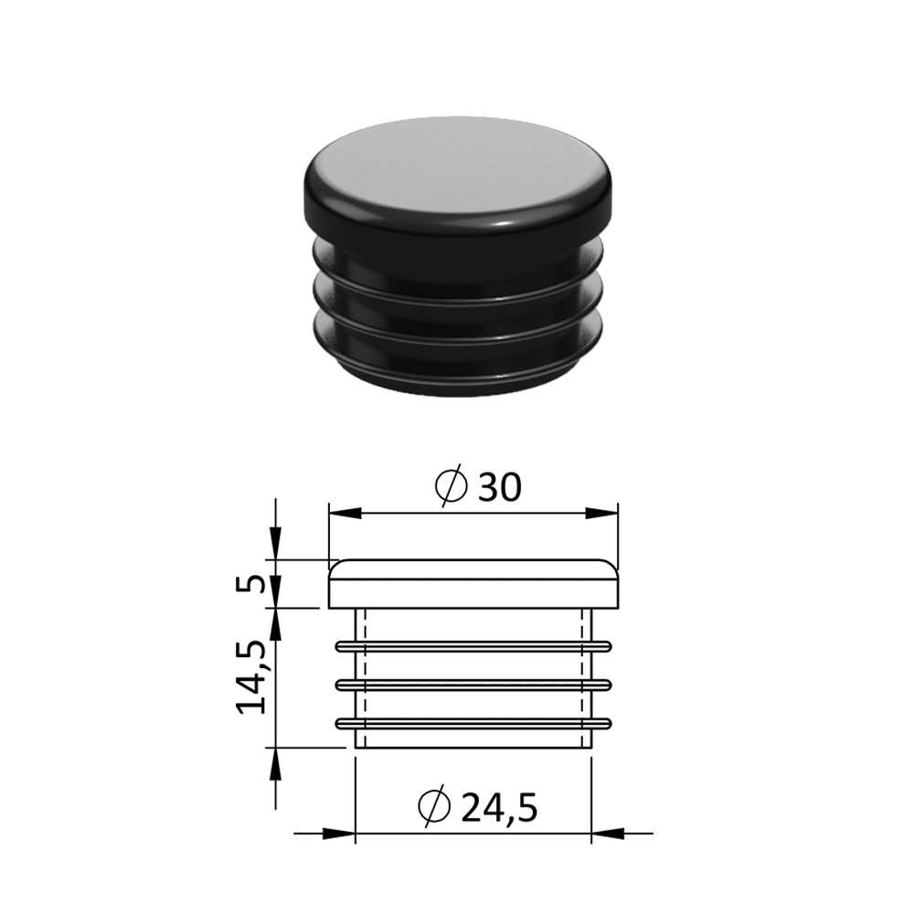 - Vnitřní krytka kulatá ø 30 mm, plastová, černá