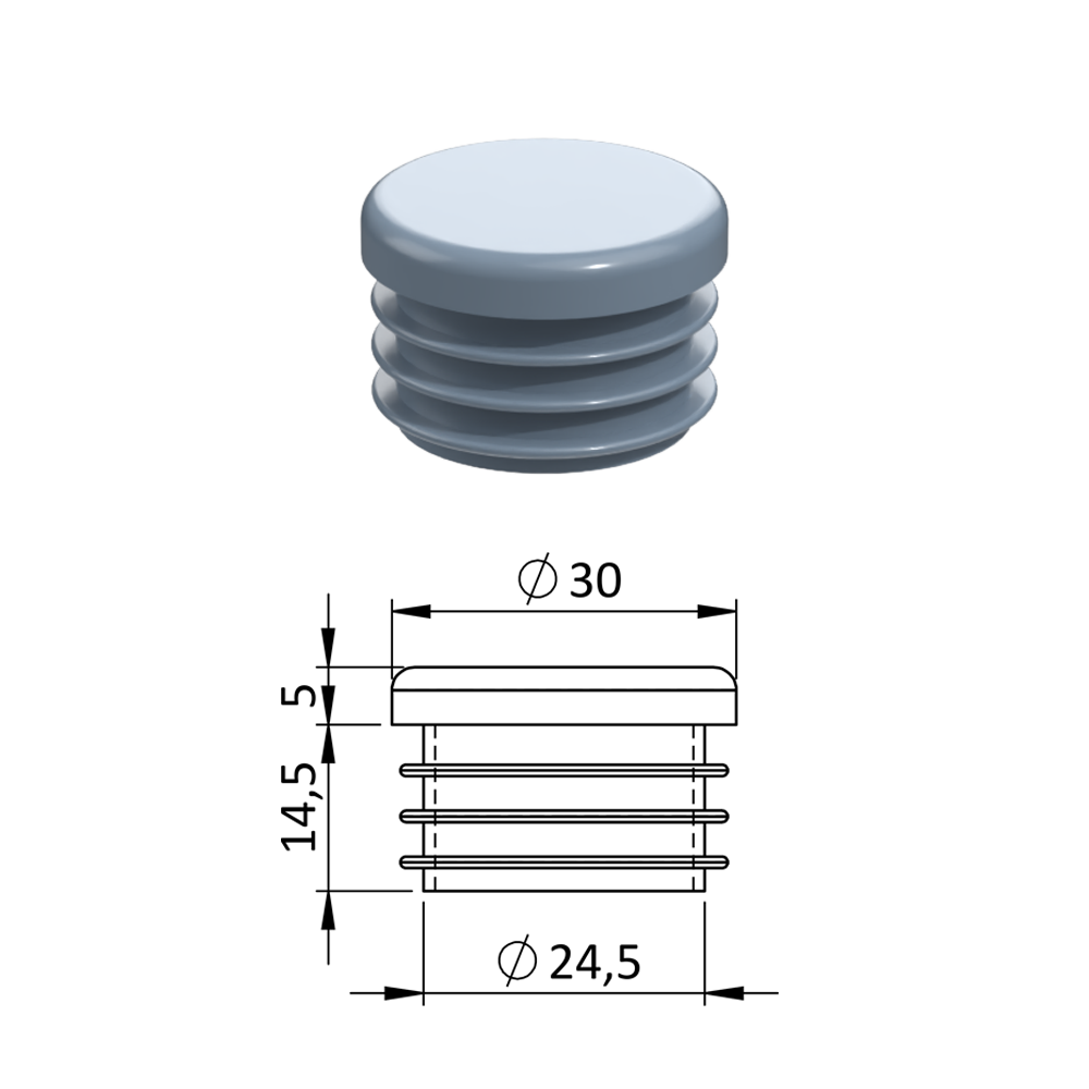 - Vnitřní krytka kulatá ø 30 mm, plastová, šedá
