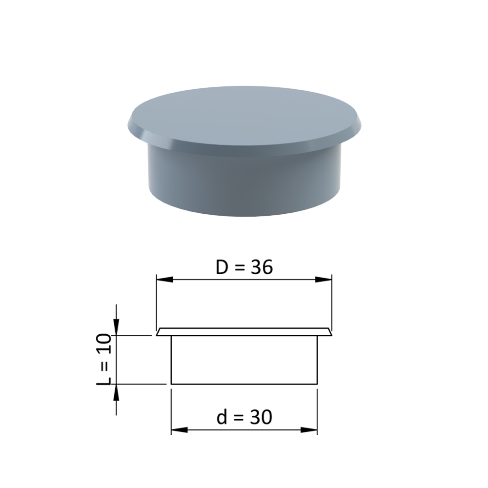 - Vnitřní krytka kulatá ø 36 mm, otvor ø 30 mm, šedá, plast