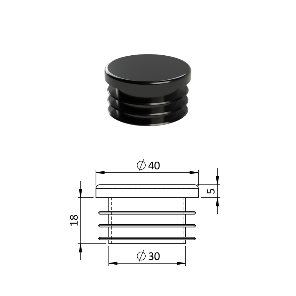 - Vnitřní krytka kulatá ø 40 mm, plastová, černá