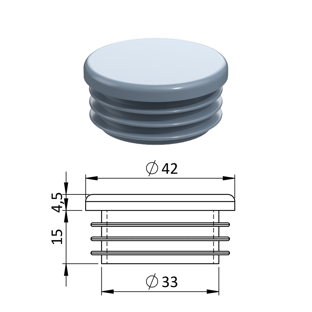 - Vnitřní krytka kulatá ø 42 mm, plastová, šedá
