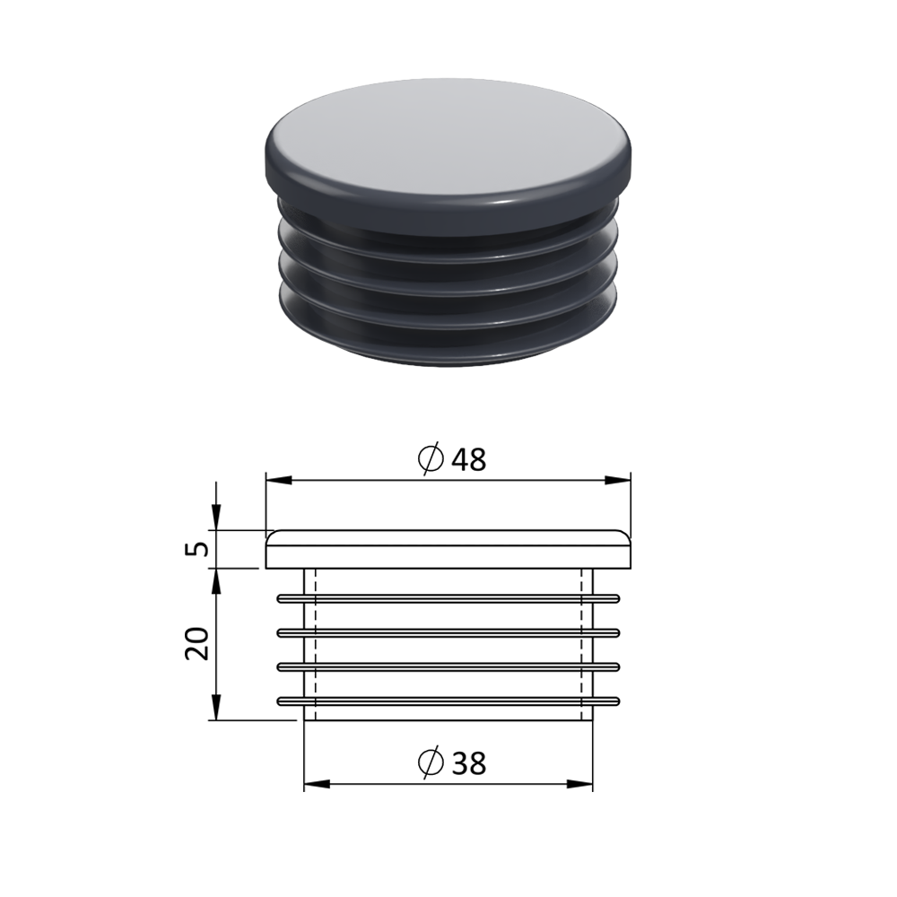 - Vnitřní krytka kulatá ø 48 mm, plastová, antracit