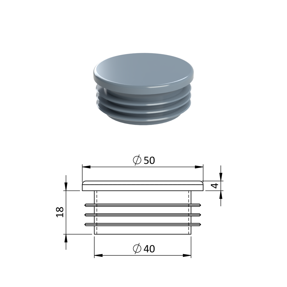 - Vnitřní krytka kulatá ø 50 mm, plastová, šedá