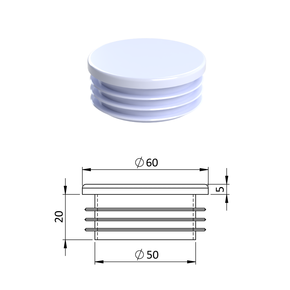 - Vnitřní krytka kulatá ø 60 mm plastová, bílá