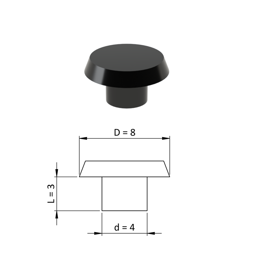 Vnitřní krytka kulatá ø 8 mm, otvor ø 4 mm, černá, plastSkladem2,02 Kč/ KS1,67 Kč bez DPH