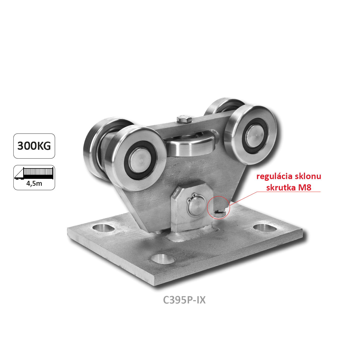 - Vozík PICCOLO (67x67 mm) pro brány do 300 kg/4,5 m, AISI 304